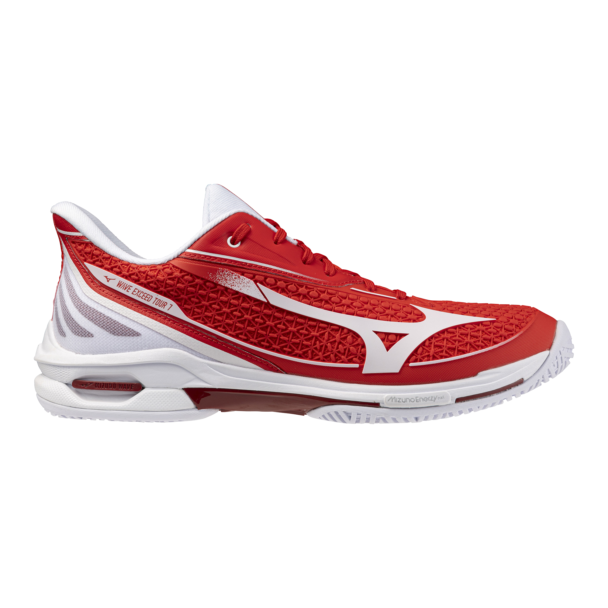 Engineered for speed-driven tennis players, this latest model is designed to deliver lightning-fast takeoff, explosive acceleration, and seamless directional changes. The newly integrated MIZUNO ENERZY NXT at the ball of the foot and heel provides exceptional energy return. Enhancing this, the MIZUNO ENERZY XP insole offers a top-tier balance of softness and energy return while maintaining a lightweight feel. The upper has been further refined from the previous WAVE EXCEED TOUR 6, ensuring a secure, protective fit. Plus, the shoe adopts DX Rubber, the most durable rubber material in Mizuno's history, for superior maneuverability during tough gameplay.